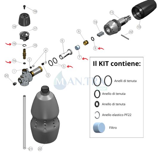 Se la tua lancia schiuma PF22 ha iniziato a perdere o a comportarsi in modo strano, potrebbe essere utile dare un’occhiata alle diverse parti che la compongono.